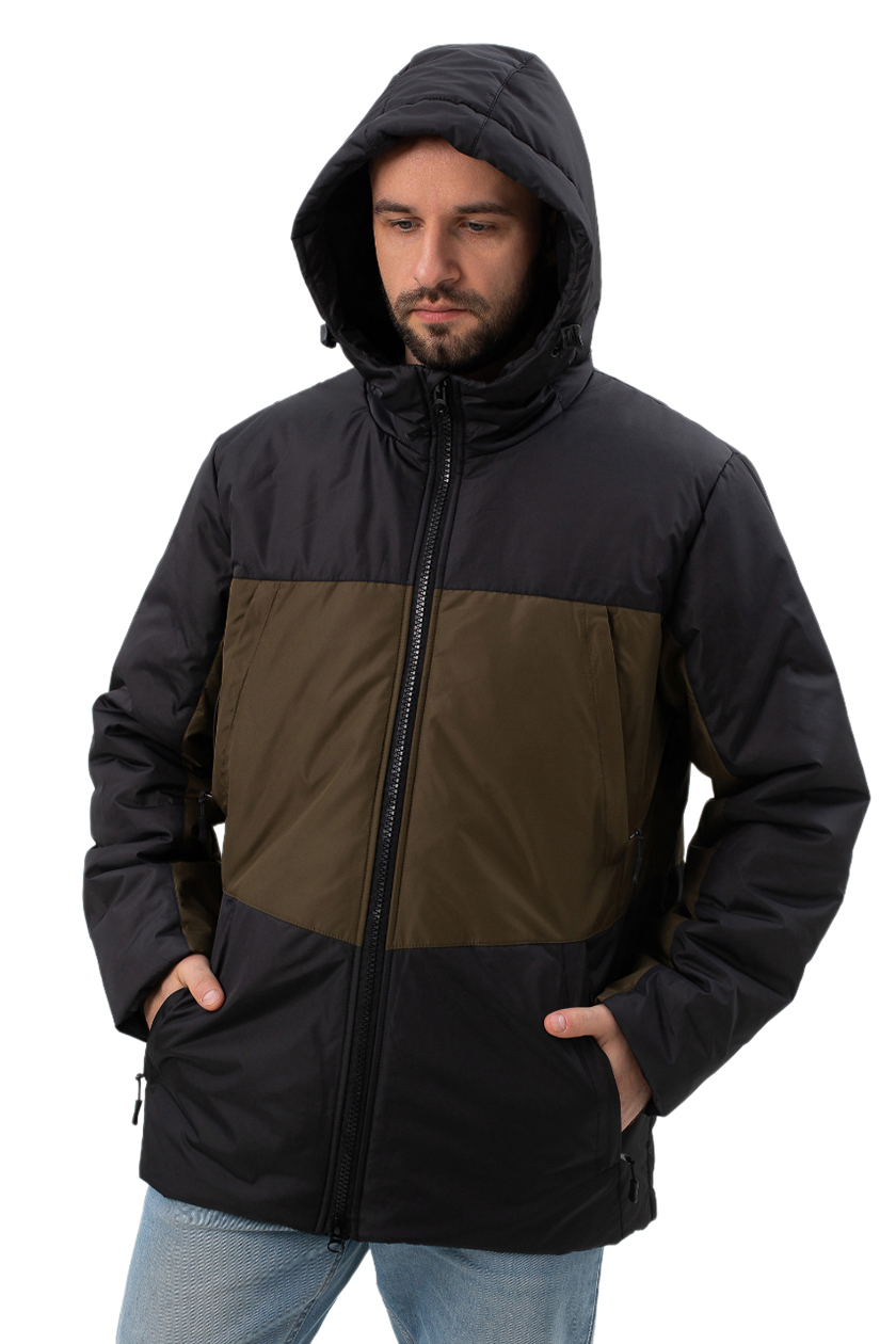 Куртка мужская демисезонная хаки с утеплённой подкладкой. Прямой силуэт, воротник стойка, капюшон несъемный.